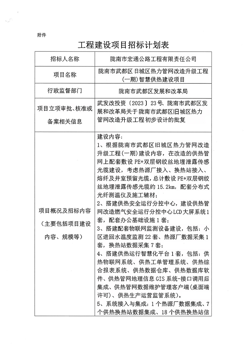 隴南市武都區(qū)舊城區(qū)熱力管網(wǎng)改造升級工程(一期)智慧供熱建設項目