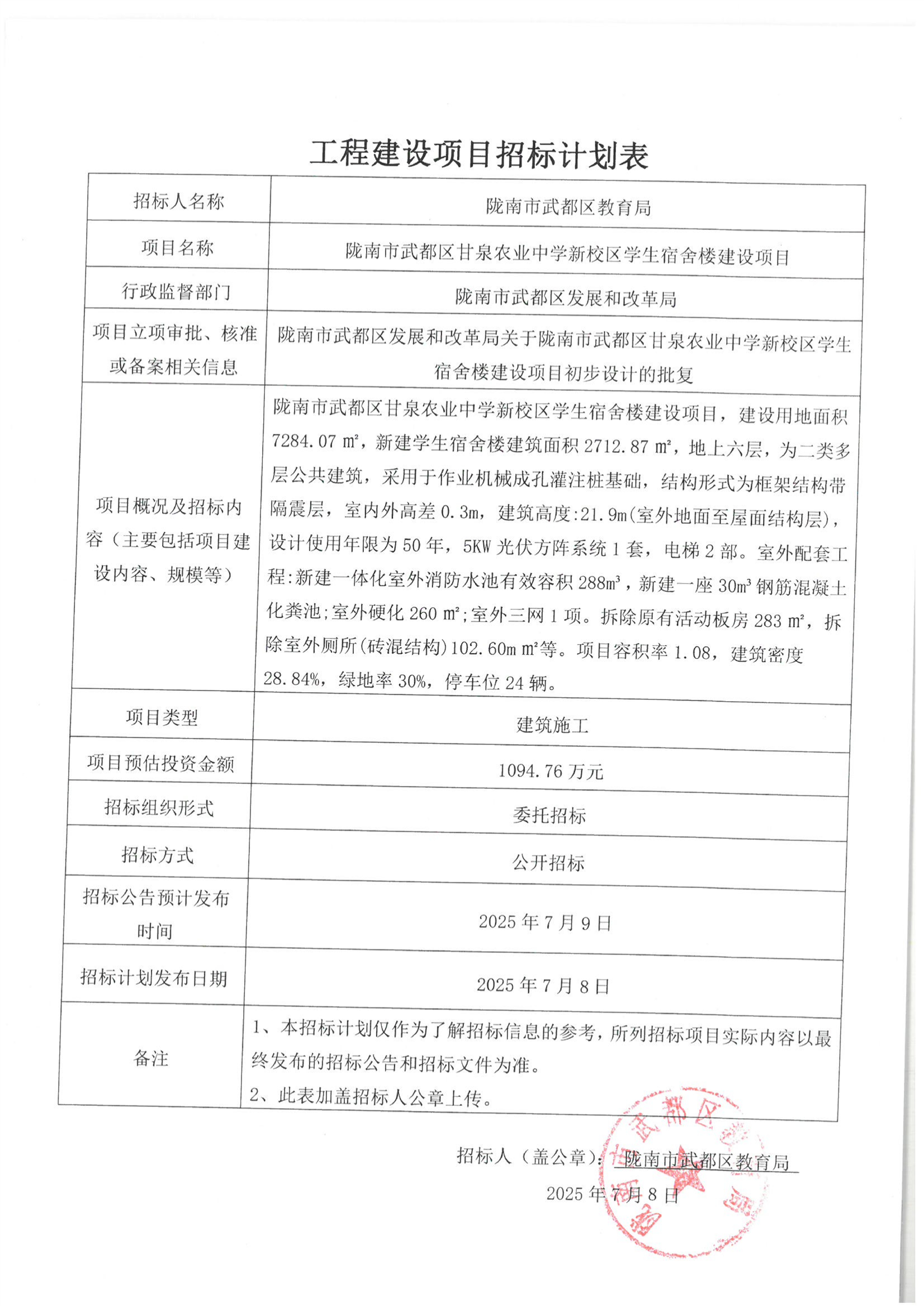 隴南市武都區(qū)甘泉農業(yè)中學新校區(qū)學生宿舍樓建設項目
