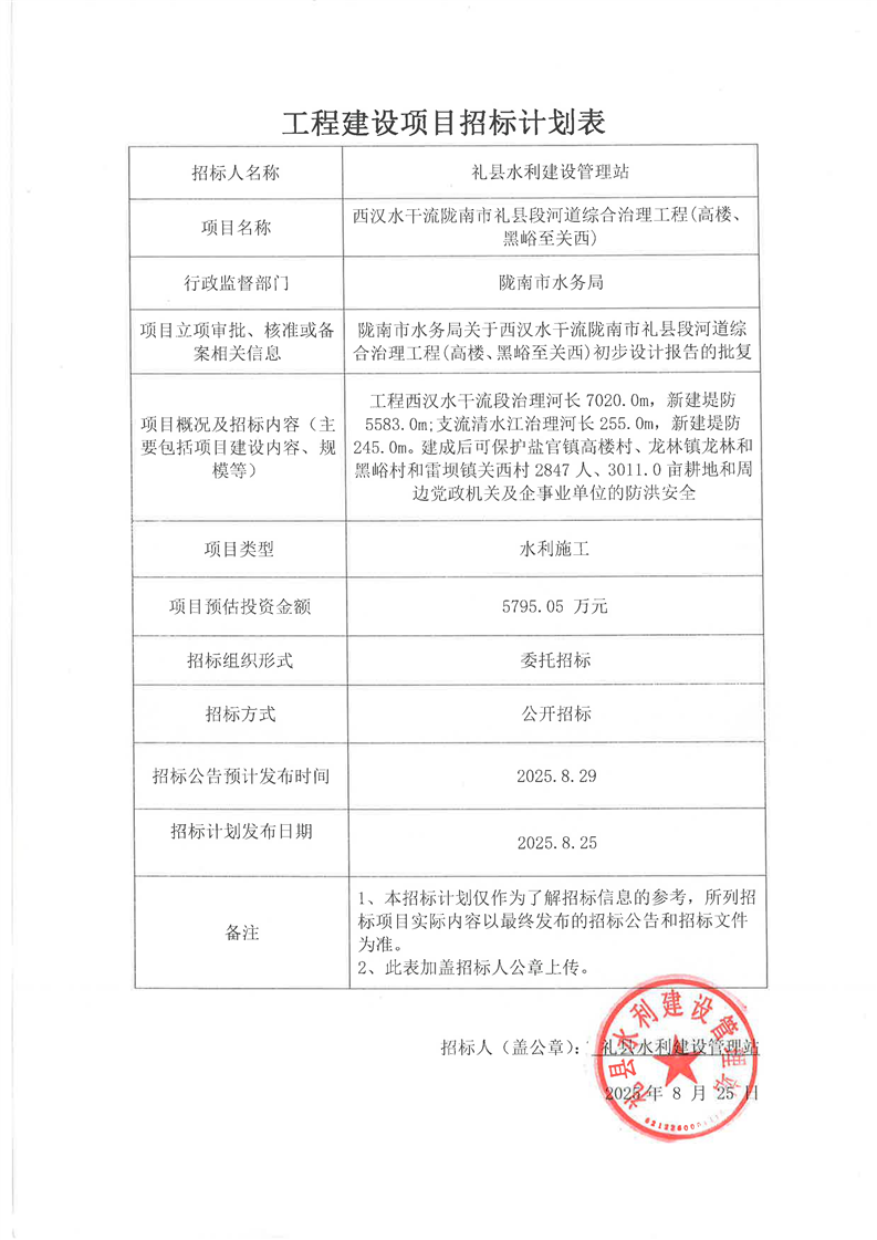 西漢水干流隴南市禮縣段河道綜合治理工程(高樓、黑峪至關西)
