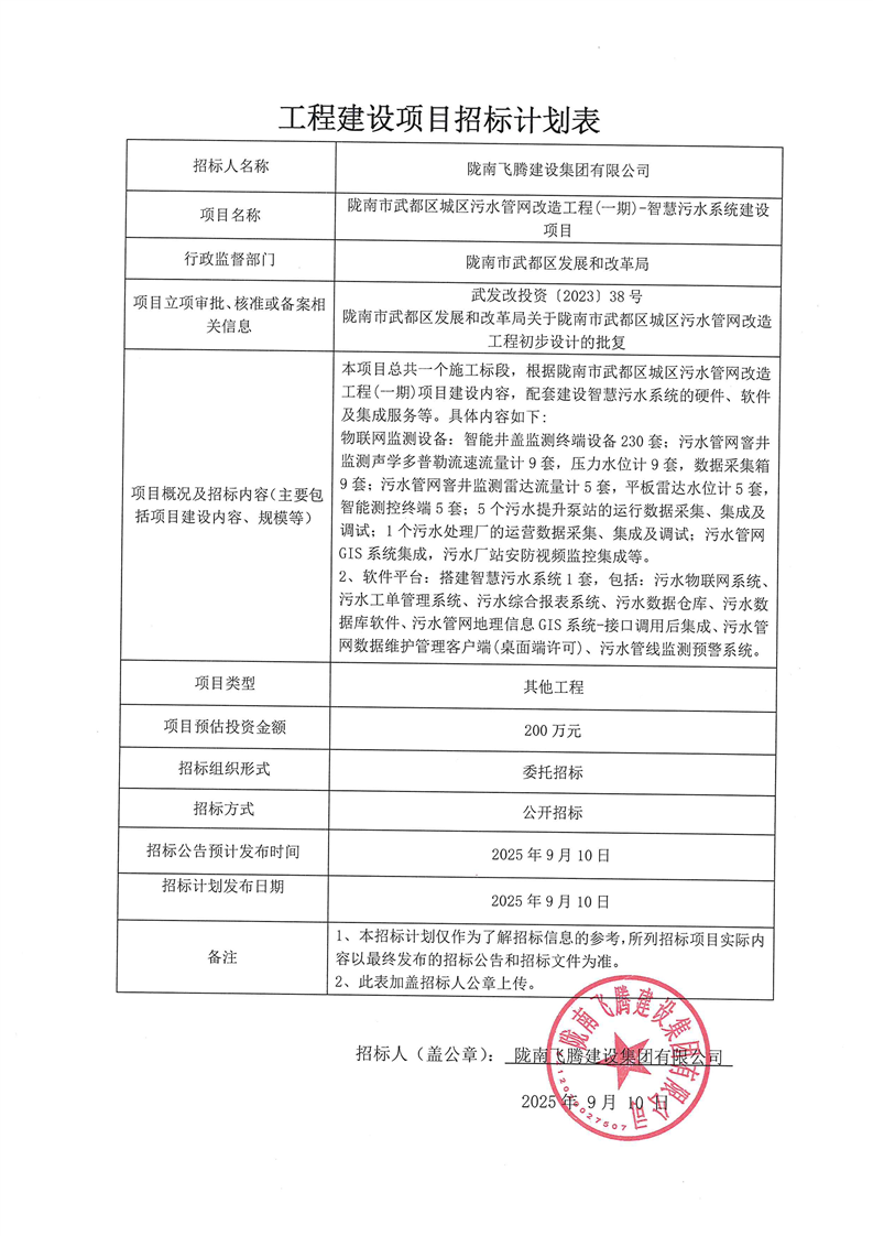 隴南市武都區(qū)城區(qū)污水管網(wǎng)改造工程(一期)-智慧污水系統(tǒng)建設項目