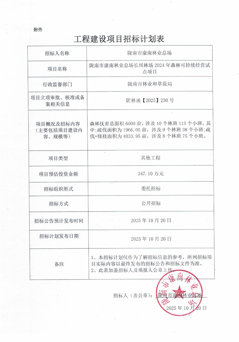 隴南市康南林業(yè)總場長壩林場2024年森林可持續(xù)經(jīng)營試點(diǎn)項(xiàng)目